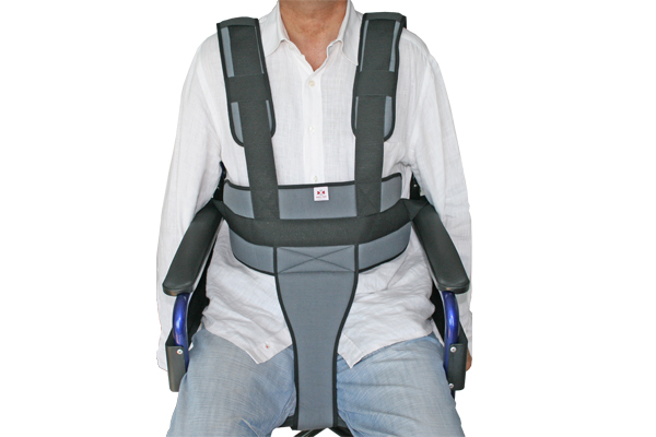 Cinturón perineal con tirantes de sujeción para silla. Máxima seguridad para el paciente.