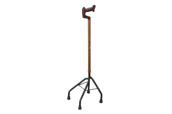 Bastón cuadrípode de color bronce.