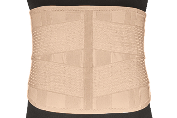 Faja semirígida lumbosacra confeccionada con tejido de algodón y reforzada con varillas flexibles en la parte posterior.