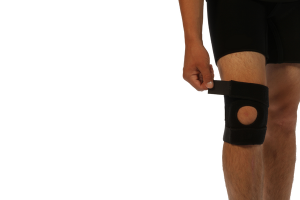 Rodilla de neopreno abierta, corta, se ajusta mediante 3 velcros.