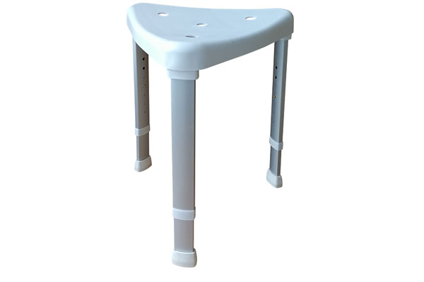Taburete con forma triangular fabricado en aluminio y plástico.